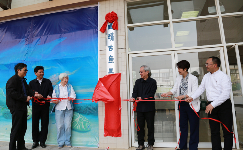 朱敏(左一)为曲靖古鱼王国博物院揭牌。