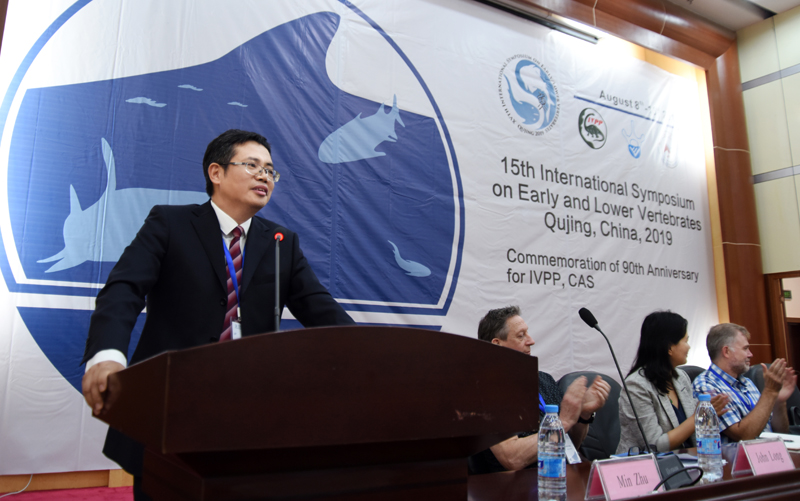在第15届早期脊椎动物国际学术研讨会上,朱敏作为大会组委会主席,主持开幕式。
