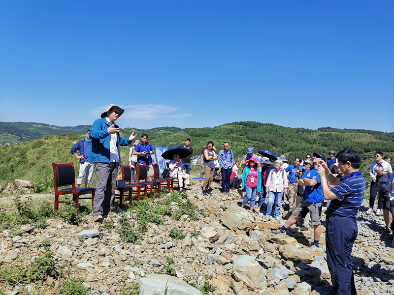研讨会期间,与会专家学者实地考察潇湘动物群(志留纪)遗址,朱敏(左)现场介绍情况。