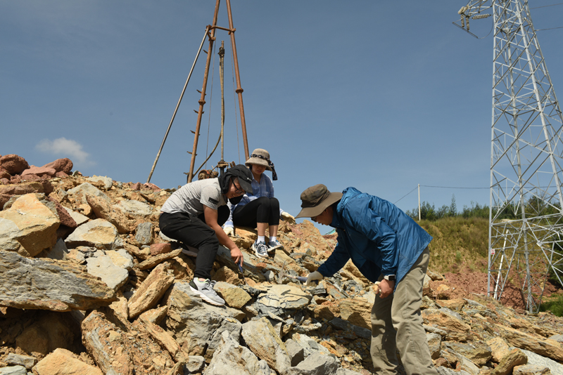 朱敏带曲靖师院学生在野外采集化石。