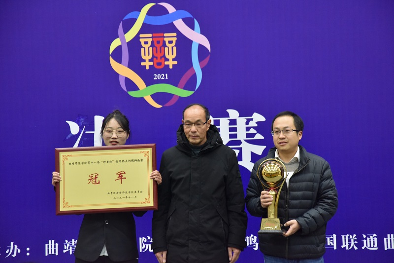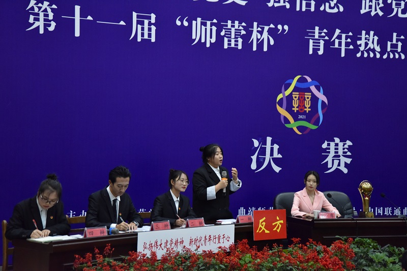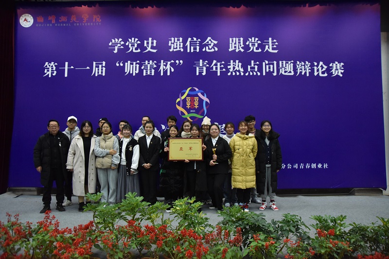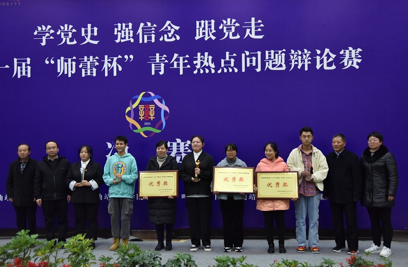 11月24日晚,bat365“学党史 强信念 跟党走”第十一届“师蕾杯”青年热点问题辩论赛决赛举行。法律与公共管理学院代表队荣获本届辩论赛冠军。党委副书记徐显敏为获奖集体颁奖。