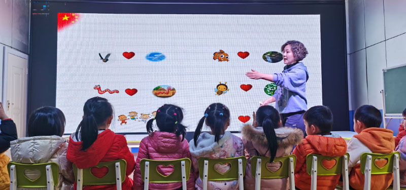 “双师型”教师刘煜正在进行中班语言活动《从小爱祖国》。
