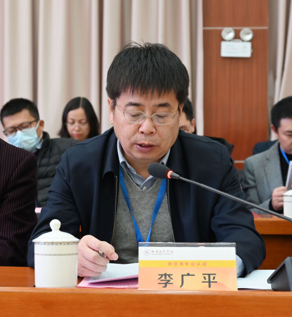 会上,李广平对本次认证工作的目的、任务、要求作了说明。他指出,要高度认识开展师范类专业认证的战略意义。党的十八大以来,以习近平同志为核心的党中央高度重视教育工作,尤其是重视教师队伍建设,把培养高素质、专业化、创新型的教师作为国家重大战略。开展师范类专业认证,是贯彻落实习近平总书记提出的“三个牢固树立”“四个相统一”“四有好老师”“四个引路人”明确要求的长效机制;是落实《教师教育振兴行动计划2018-2022年》,全面深化新时代教师教育改革,做强做优教师教育,从源头上培养高素质、专业化、创新性教师队伍的重要举措;是全面贯彻全国教育大会精神,落实新高教40条,强化人才培养在高校的中心地位,全面提高师范专业人才培养质量的重要抓手;是贯彻党的十九届五中全会提出“建设高质量教育体系”战略要求的重要基础工作。