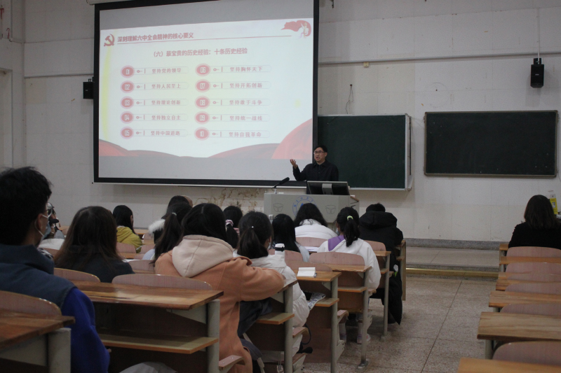 此外,教师宣讲团成员唐俊、陈惠敏、李保玉分别到马克思主义学院、信息工程学院、物理与电子工程学院宣讲党的十九届六中全会精神。