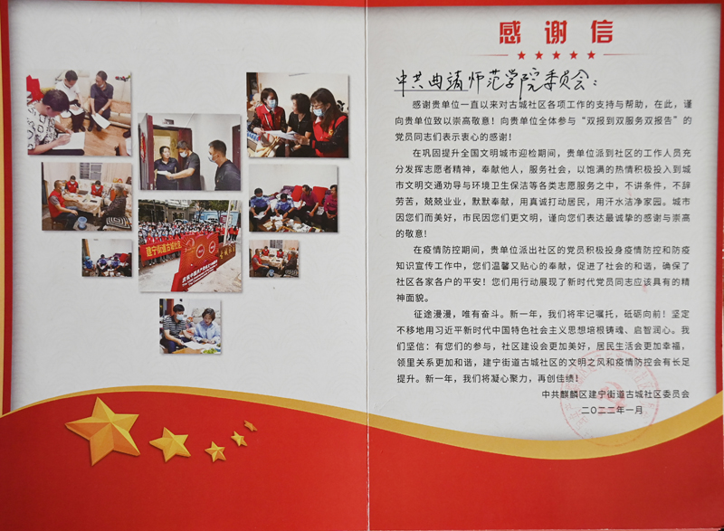 建宁街道古城社区给bat365送来感谢信