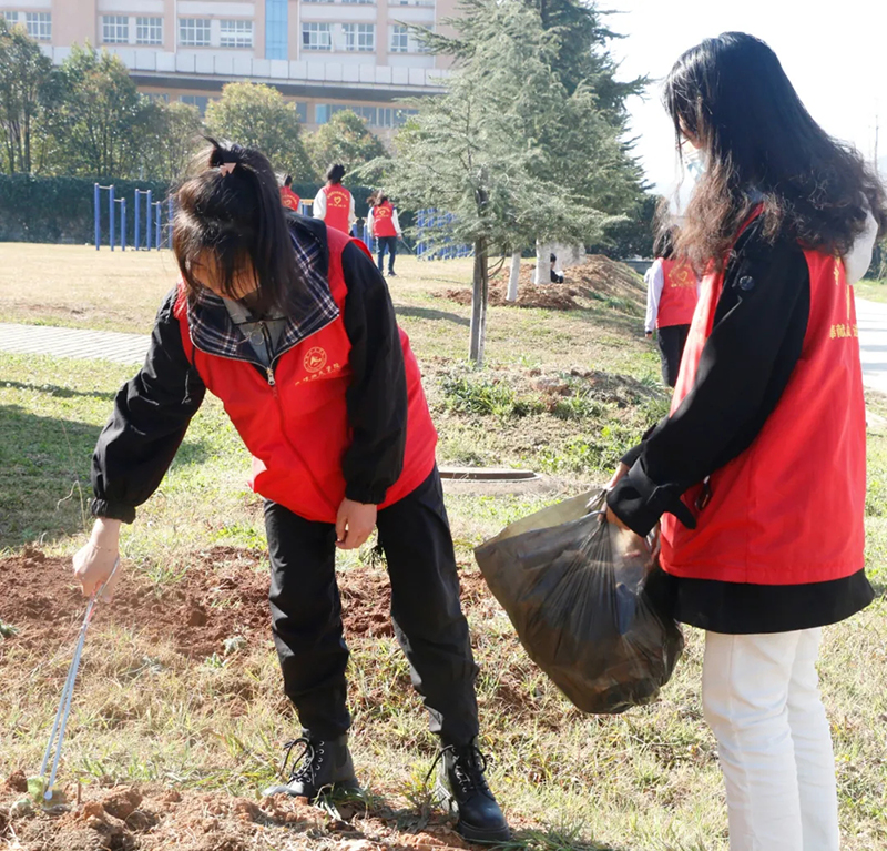 按照疫情防控工作的要求,志愿者们秉承分批次、不聚集的活动原则,分别到各学院所负责的校园区域、教室和宿舍开展大扫除和垃圾清理。他们分成小组,明确分工,相互协作,不留死角,拿着清洁工具,沿着校园道路,在花坛、绿化带、墙角下等区域捡拾着纸屑、饮料瓶等垃圾,校园里到处可见环境维护志愿者。