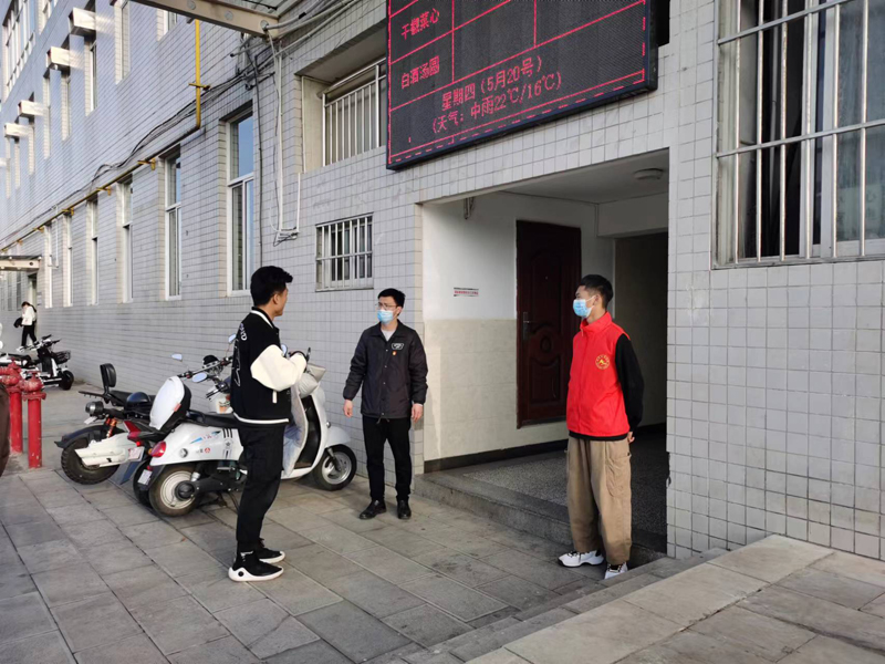 在队长张应奎的统筹协调下,疫情防控党员先锋队二队队员们认真做好校内疫情防控工作排查,协助做好班级网格化管理和宿舍网格化管理工作、晨午晚三检和晚归人员管理工作,以及师生信息排查等工作。从疫情报备提醒,到返校人员信息排查,在一串串电子数据、一步步细心排查中,守护师生生命安全。