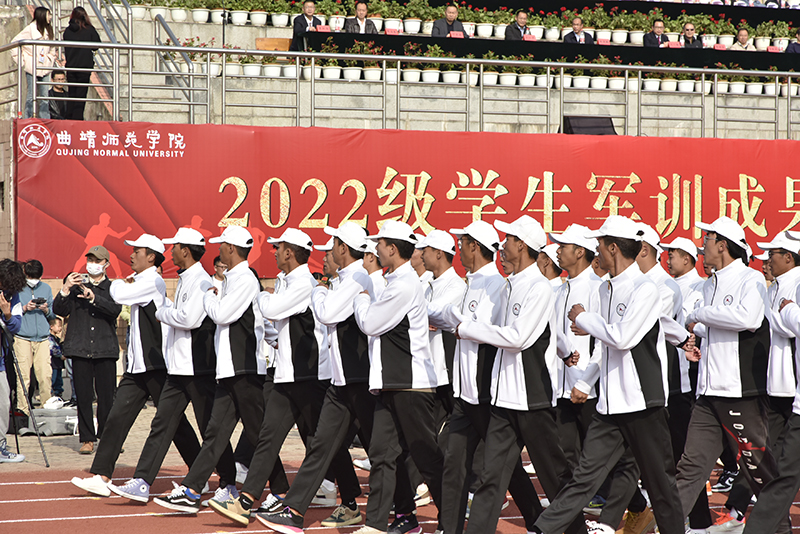 徐显敏代表学校对全体参训同学经过艰苦训练圆满完成任务表示肯定和赞扬,向所有获得荣誉的集体和个人表示祝贺,向辛勤付出的教师、辅导员以及长期以来对bat365学生军训工作给予大力支持的麒麟区武装部表示感谢,并对全体同学提出三点希望:用信仰为青春定向,永葆清澈“信仰”,胸怀国之大者,自觉将青春“小我”融入强国“大我”,在青春远航中“破浪前行”;用知识为青春赋能,管好自己、用好时间,掌握成长的主动权,珍惜岁月,潜心读书,练好本领,在奉献中迸发出强大能量;用奋斗为青春添彩,用军训场上锻造的不怕苦、不怕累、不畏难的奋斗精神诠释最美青年模样,在青春赛道上跑出新时代青年的最好成绩。