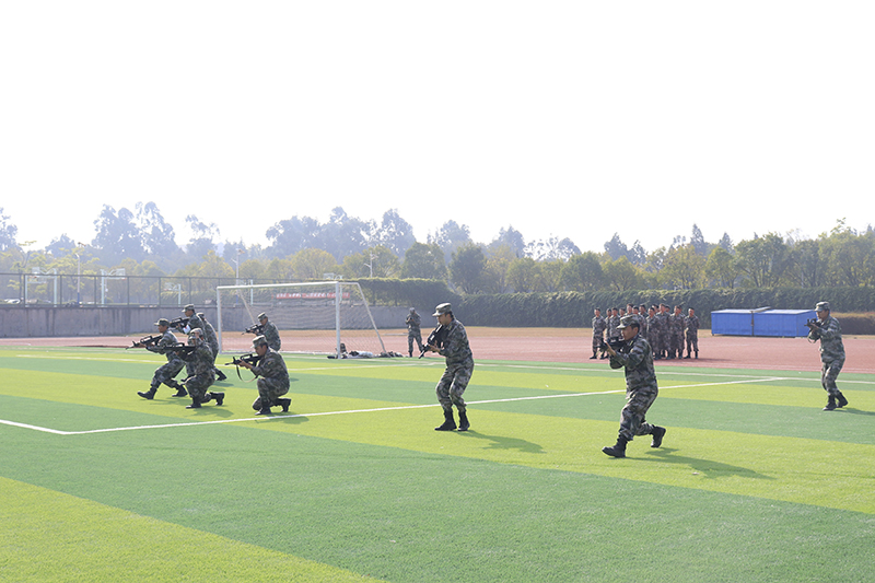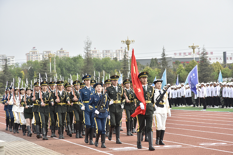 在全体人员的注视中,学校国旗护卫队入场,举行升国旗仪式。16个学院方队进行了分列式表演。2022级军训学生代表进行了擒敌拳、应急棍术、匕首操表演。承训教官进行了战术表演,精彩的表演赢得现场师生的阵阵喝彩和掌声。