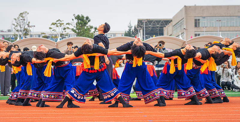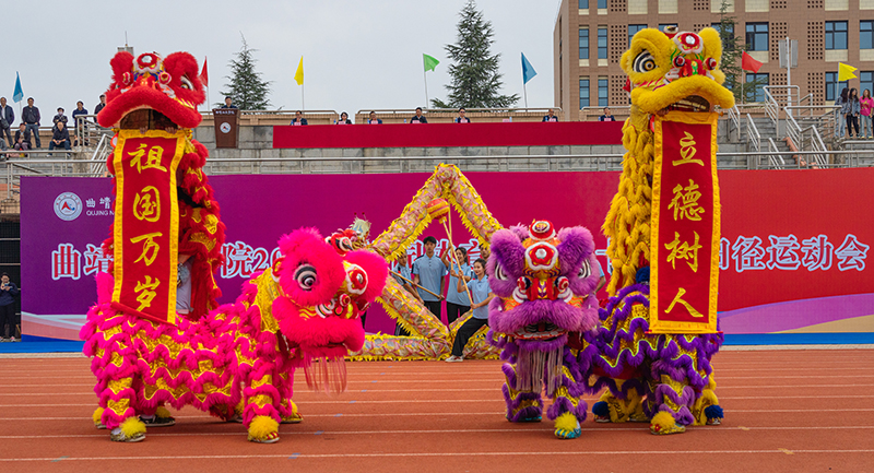开幕式上,音乐舞蹈学院、体育学院师生们带来了精彩的文艺表演。歌伴舞《诗书华章》唱出“百年曲师薪火相传,立德树人初心不忘”的曲师乐章。精彩的舞龙舞狮表演赢得现场师生阵阵喝彩和掌声。在舞蹈《向阳而生》中,开幕式圆满结束。