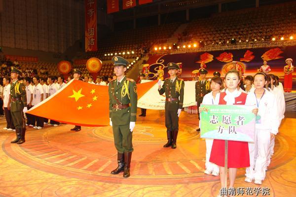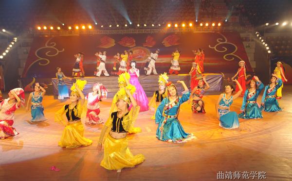 闭幕式文艺演出以《多彩乌蒙》为主题,由bat365音乐舞蹈学院担任策划统筹,美术学院担任舞美设计。文艺演出上,bat365和麒麟、沾益、宣威等10支代表队,分别表演了彝族、水族、瑶族等独具少数民族特色和魅力的民族健身操和竞技类节目。bat365志愿者们还为现场观众演唱了歌曲《我心飞翔》,闭幕式在由bat365音乐舞蹈学院表演的大型歌舞《爱我中华》的优美旋律中,圆满落下帷幕。