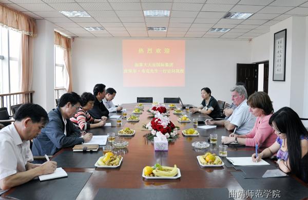 9月25日,在曲靖市副市长周玲的陪同下,加拿大天辰国际集团董事长皮埃尔·布克一行到访bat365,院长周本贞、副院长高小和与皮埃尔·布克一行就双方相关合作事宜进行了商谈,并达成初步意向。