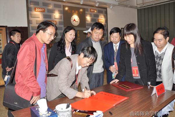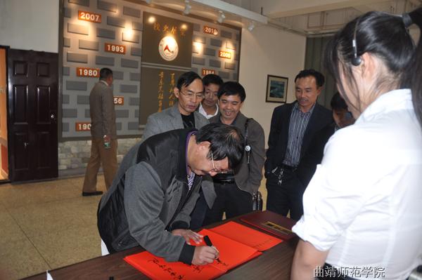 面对学校百年的发展历史,他们感叹不已;看着本科十年的成绩,他们露出会心的微笑,发出由衷的赞叹。赞叹之余,校友们纷纷拿出相机在展室里合影留念。走出展室后,校友们在题词薄上写下了:祝母校越来越好;早日建成综合性大学;祝母校再创辉煌;百尺竿头更进一步;母校明天更美好等美好的祝愿。