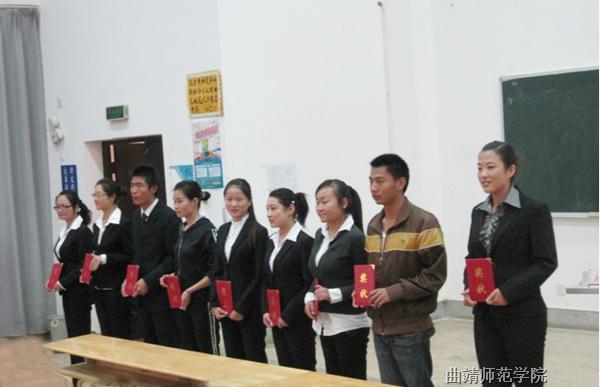 10月23日,由教务处主办、教育科学研究中心承办的2010年学生课堂教学技能比赛圆满结束。副院长孙成科为一等奖获得者和优秀组织奖单位颁发证书并讲话。