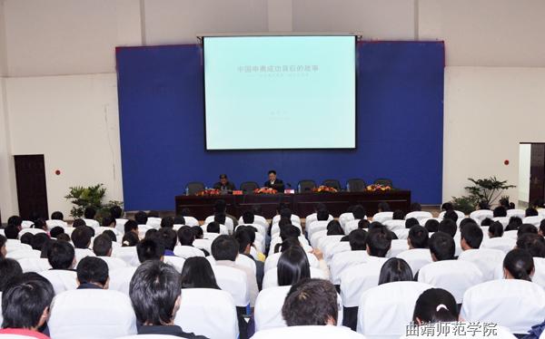 孙大光在报告中,从胡锦涛在北京奥运会、残奥会总结表彰大会上的讲话入手,从北京奥运现象的启示、申奥——当今世界的顶级竞争、中国申奥特点及案例分析三个方面作了讲授。