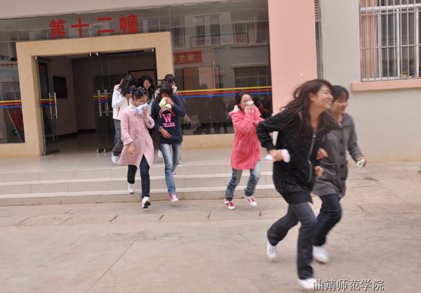 参加演练同学有序撤离