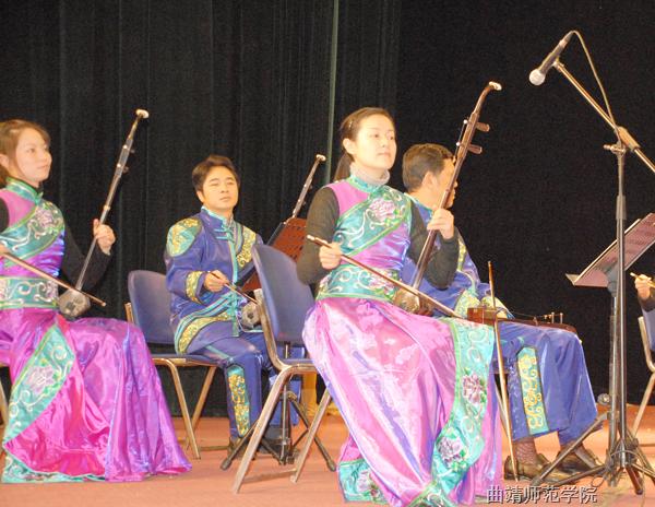 下午2时30分,在激越昂扬的锣鼓声中,一曲《金蛇狂舞》拉开了音乐会的序幕。这首聂耳先生创作于1934年的乐曲,根据民间乐曲《倒八板》改编而成,富于浓厚的乡土气息,经过云南民族交响乐团艺术家们的重新演绎与诠释,以炙热的情怀、奔放的旋律,凸现出江南水乡人民龙舟竞渡时热烈欢腾的场面,使在场师生立即沉浸在高雅艺术的海洋中。