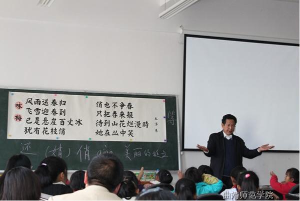 12月10日上午,副院长高小和教授为“国培计划——云南省农村中小学骨干教师培训”脱产转换研修班小学语文学科教师上了一堂小学语文公开课。