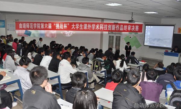 3月22日和23日晚,由校团委主办的第六届“挑战杯”大学生课外学术科技创新作品竞赛终审答辩圆满结束。经过初赛、复赛,进入终审决赛的58件作品在理学楼A区每天分三场同时进行答辩。党委副书记杨思娅、副院长孙成科及相关专业专家担任答辩评委。党委副书记王志刚等领导到场观看。