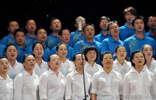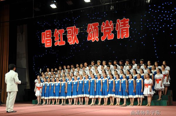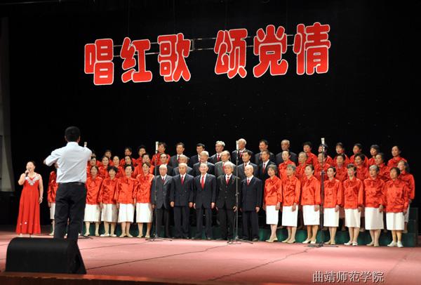 比赛在离退休教工合唱团《四渡赤水出奇兵》的洪亮歌声中拉开帷幕,老同志们铿锵有力的声音,让我们再一次见证了党的领导人的睿智果敢、高瞻远瞩。“前进,前进,向前进,挺起胸膛,何惧风浪;前进,前进,向前进,肩负民族的希望。”院长周本贞等领导参加的机关工会合唱团演唱的《走向复兴》,曲调昂扬向上,歌词振奋人心,将整个比赛推向了高潮。《爱我中华》、《祖国不会忘记》、《我们走在大路上》、《歌唱祖国》、《祖国颂》等一首首传唱广泛的红色歌曲唱出了曲师人昂扬的精神面貌。最后,比赛在音乐舞蹈学院演唱的《放下三棒鼓,扛起红缨枪》中圆满落幕。