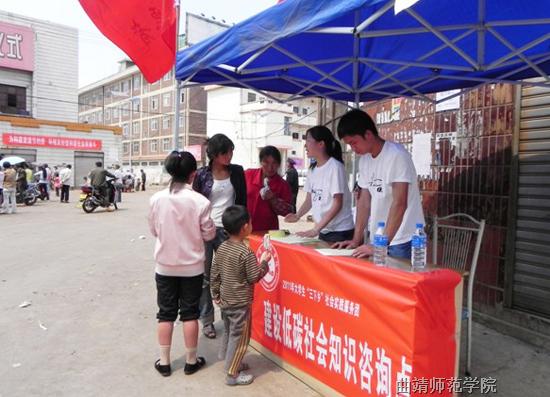8日下午,在古城校区举行出征仪式,随后,社会实践服务团前往曲靖市麒麟区越州镇和沿江乡,先后开展了“送法下乡”普法宣传活动、节能减排宣传活动,举行了两场文艺演出,围绕是否会对资源进行回收利用、有没有节约用电用水习惯等12项日常生活问题进行了问卷调查,开展社会主义新农村宣传墙体绘制活动,以图文并茂的形式向当地居民展示新农村建设、新型农村合作医疗、节能减排、建设低碳社会等当前社会热点话题,深受当地政府和群众的一致好评。