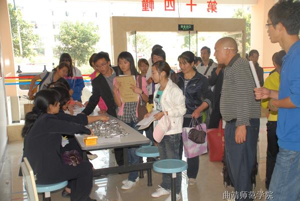 设在教学楼大厅的报到处繁忙有序