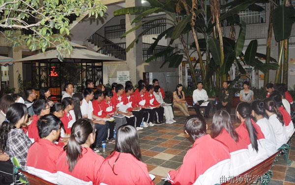 8月29日晚,全国战斗英雄、全国拥军模范、一等战功获得者刘景瑞应邀到校,在招生就业处就业沙龙广场,围坐在老师及学生中间,零距离与2011届各学院40名新生代表,亲切交谈当代大学生的理想、追求与人生价值的话题。副院长李莉出席座谈会。