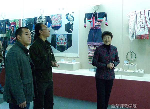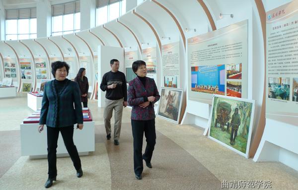 在昆明学院党委副书记李媛芬陪同下,参观考察该校建设发展成果展