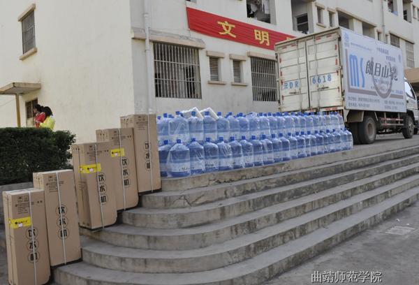 麒麟区江达山泉水厂捐赠bat365的朗目山泉桶装水和饮水机