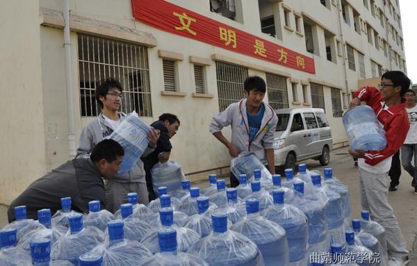 由于曲靖遭遇春夏秋连旱,水源水库库容不多, 9月中旬起,供给bat365用水的自来水第二水厂已间歇性停产,有着13000余师生的bat365用水十分紧张。自国庆以来,学校虽然采取多项措施确保了学校食堂及全校师生的基本用水,但用水困难的形势依然没有缓解。