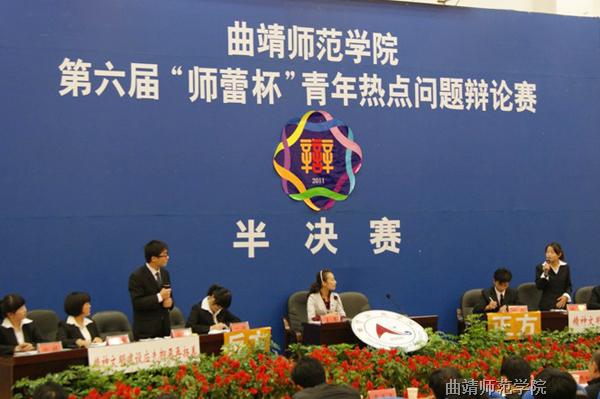 在前期初赛、复赛的基础上,共有人文学院、政法学院、教师教育学院、计算机科学与工程学院四个学院的辩论队入围半决赛。比赛分为两场,两场比赛的辩手旁征博引,唇枪舌战,针锋相对,辩手们以渊博的知识和机智雅致的辩风,赢得台下观众的由衷赞叹。经过评委评选,人文学院、教师教育学院胜出,成功晋级决赛。同时还评选出了三位优秀辩手。