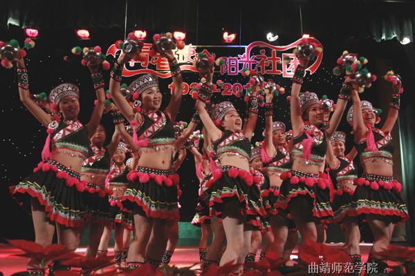 演出在青春动力十足的歌舞《美丽的鲜花》中拉开帷幕。大型配乐诗朗诵《历史的先声》唤起了人们对“五四”那段激动人心的历史回忆;男声独唱《阳光乐章》点燃了青年们的阳光激情;男子群舞《草原风》吹起了年轻的活力;女声组合《祝福祖国》表达了青年们对祖国深深的依恋与祝福;组合《缤纷校园》,以优美的歌声唱出了缤纷校园的美丽,唱出了同学们对大学校园的热爱;参加全国第三届大学生艺术展演获二等奖的原创壮族女子群舞《碗乐》以轻快优美的舞姿,动听醉人的击碗乐声再现了bat365青年学子的青春风采;参加云南省第三届大学生艺术展演获专业组一等奖的组合舞蹈《舍不得》和原创彝族女子群舞《彝花开》,以优美的舞姿表现了少数民族青年男女的青春情愫和青春激情;校园交响曲《律动青春》点燃了文艺演出的尾声激情,激扬了年轻活力的心。最后文艺演出在曲靖著名女高音独唱家、bat365教师雷宁的《爱我中华》中圆满结束。