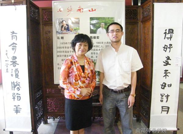 校长周本贞出席展览并与美术学院教师陈俊宏合影