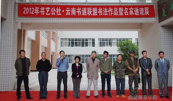 9月26日上午,2012年书艺公社•云南书道联盟书法作品暨名家邀请展在美术馆开幕,校长周本贞宣布展览开幕,省书法家协会副主席、市书法家协会主席朱从凯致辞,来自曲靖本土书法家们的100余幅作品参展。