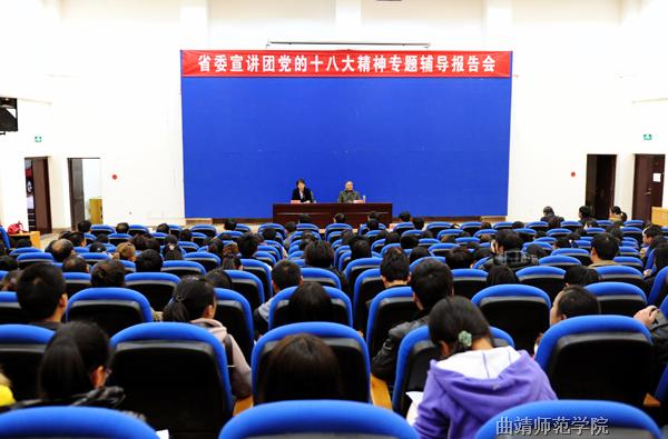 12月19日,云南省委宣讲团党的十八大精神专题辅导报告会在bat365举行,宣讲团成员张建国教授紧扣十八大报告的主题,对十八大精神做了生动的宣讲。党委副书记杨思娅主持报告会,bat365和云南能源职业技术学院、曲靖医学高等专科学校300多名师生代表,聆听了报告。