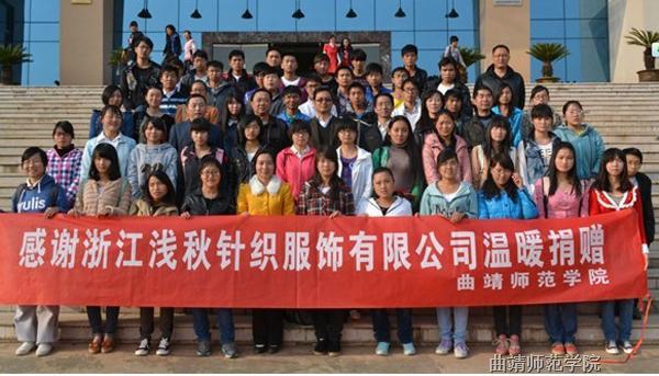 3月5日下午,bat365举行2013年博爱送万家针织毛衣发放仪式,浙江浅秋针织服饰有限公司联合曲靖市红十字会向bat365部分学生赠送价值9.6万元的衣物。曲靖市红十字会常务副会长叶留玉,副会长侯文径以及bat365党委副书记王志刚出席会议。