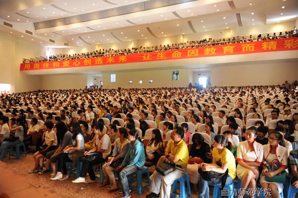 随着讲座开始时间的临近,学生会堂座无虚席,走廊也加满了座位,场面非常火爆。来自曲靖市的文学爱好者和bat365师生四千余人济济一堂,聆听了这场高水平的讲座。