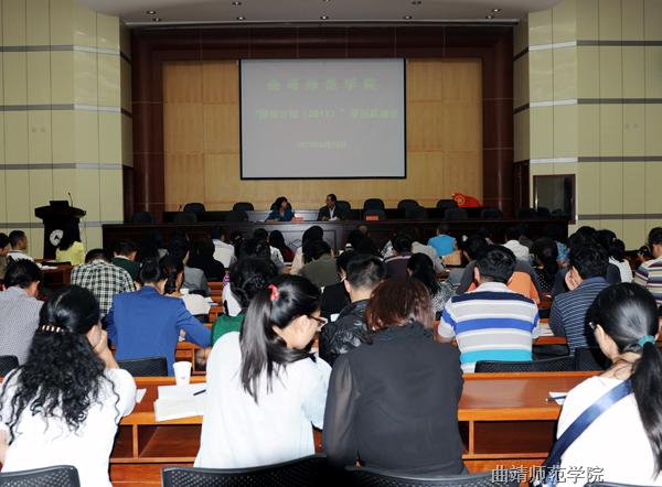 “国培计划”项目办公室负责人张坤香对国培计划2013项目进行了具体安排,教务处副处长刘章书介绍了顶岗实习工作安排情况。