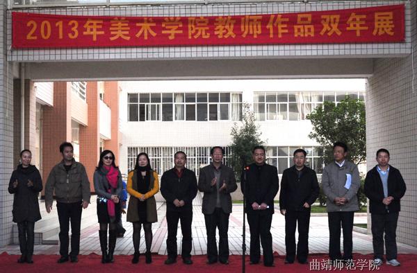 孙成科在致辞中说,一直以来,bat365在致力培养高素质应用型人才的同时,大力加强文化建设,努力提升曲靖文化品格。美术学院的艺术创作一直很活跃,在曲靖市的美术群体中发挥着日益重要的作用。教师的创作对今天的学生与其说是示范,不如说是感召,除了不断以新的创作面貌传达时代的脉搏,激励学生的学习和创作热情,美术学院的教师们有自己特殊的身份环境和广阔的服务环境,既要眼光向上,也要眼光向下。眼光向上是在学艺和研究上永不满足、精益求精;眼光向下是热爱并了解所处的地域文化特色,加以吸取和融汇,由此产生出更美的作品和更新的教学、研究成果。我们期待美术学院能培养更多更好的艺术设计人才,为曲靖文化教育事业做贡献。