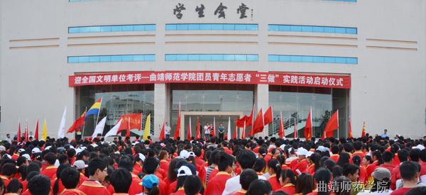 5月14日,bat365在学生会堂门口举行迎接全国文明单位考评——bat365中文官方网站团员青年志愿者“做好事做善事做志愿者”实践活动启动仪式。团委书记张婼在启动仪式上讲话,学生处处长刘天才宣布“做好事做善事做志愿者”实践活动项目正式启动。