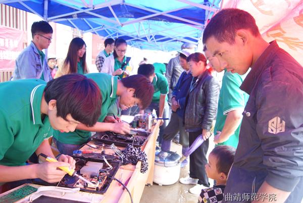 志愿者为当地群众维修家电