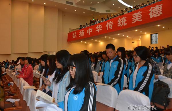 讲座最后,主会场、12个分会场近5000名师生在主持人的带领下朗诵道德经典,齐唱道德歌曲《好人就在身边》,新生入学教育暨道德讲堂第一场讲座在歌声中圆满结束。
