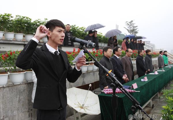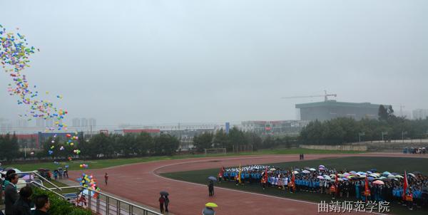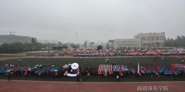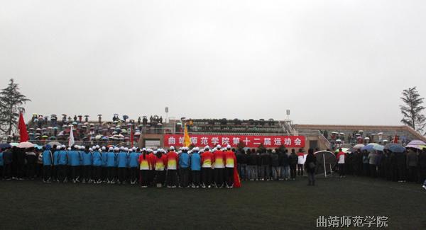 渐渐入冬的天气有些寒冷,天空还飘着蒙蒙细雨,但阴冷潮湿的天气并没有阻挡师生们的热情。上午8时30分,庄严的校旗队、裁判员代表队、教职工代表队和15个学院的运动员代表队依次进入会场。开幕式上举行了庄严的升国旗仪式,运动员代表和裁判员代表分别进行了宣誓。