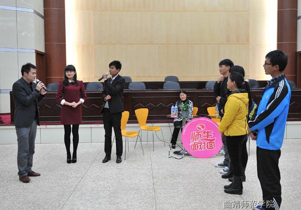 11月19日晚,由马克思主义学院主办的第三期“师生面对面”交流会在图书馆三楼报告厅举行。物理与电子工程学院教师李哲、马克思主义学院教师李静、曲靖广播电视台著名主持人王赛与大一新生交流“大学生该如何学习”。