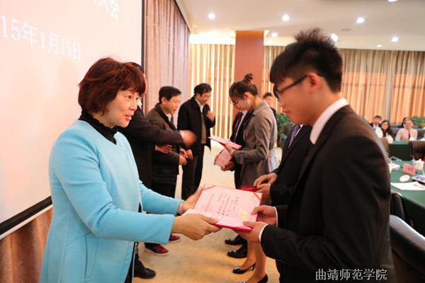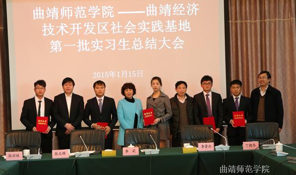 1月15下午,bat365与国家级曲靖经济技术开发区组织召开了大学生社会实践基地第一批实习生总结表彰大会,51名优秀实习生受到表彰。bat365副校长李莉、经开区管委会分管领导李晋云调研员在会上讲话。