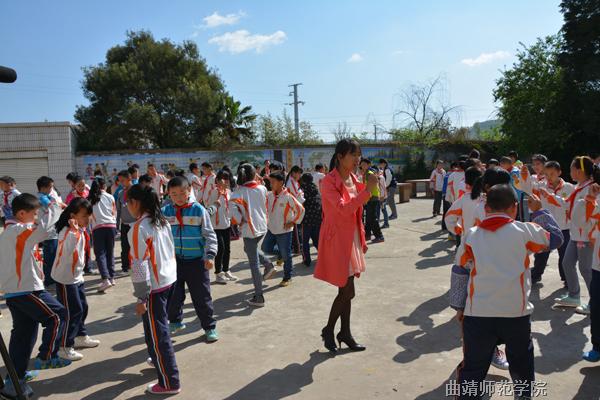 课间,徐瑞和学生一起做操、游戏