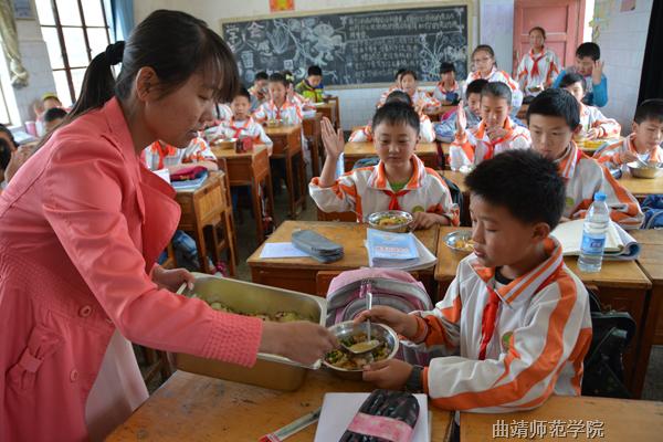 徐瑞为学生分发午餐