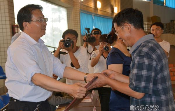 校长李国疆为获“体育道德风尚奖”的单位颁奖