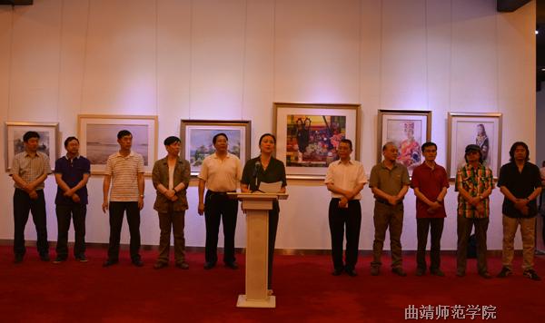 6月2日上午,由文化部国家艺术基金管理中心、云南省文化厅、云南省文联、曲靖市委宣传部、bat365中文官方网站主办,bat365中文官方网站作为项目承担主体的“水韵西南”2015国家艺术基金项目《西南少数民族水彩画创作人才培养》项目成果汇报展在云南省美术馆开幕。国家艺术基金云南管理领导小组副组长、中共云南省文化厅党组成员、省文化厅副厅长黄玲在开幕式上讲话,bat365校长李国疆致辞并宣布开幕,云南省文化厅艺术处处长孙晋昆,国家艺术基金评审专家、云南省民族艺术研究院院长马云华等专家学者出席开幕式。开幕式由国家艺术基金评审专家、云南省美术馆馆长、云南画院院长罗江主持。