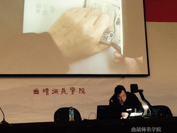 孙成科在开幕式上说,篆刻是我国伟大的艺术瑰宝,中国传统文化的精髓。美术学院从2012年开始面向全国招收书法专业学生,培养能够熟练掌握书法、篆刻所必需的基本知识,具有较强综合素质和审美能力全面发展的高素质应用型专门人才;设立书法专业,对宣传曲靖,提升文化软实力有积极意义;感谢云南印社的专家到学校传经送宝,一同打造“二爨书法艺术”,促进曲靖书法艺术教育的发展,主动融入国家一带一路的宏伟蓝图。